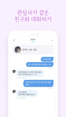 바쁜 일상 속, 진심 어린 대화가 그리우신가요? 직장 생활에 지쳐 새로운 사람을 만날 기회가 드물어졌다면, 이제 당신의 동네에서 편안하게 소통할 수 있는 친구를 찾아보세요. 저희 서비스는 답답한 소개팅 문화 대신, 자연스러운 대화를 통해 새로운 인연을 맺을 기회를 제공합니다. 익숙한 공간에서 뜻밖의 대화 상대를 만나거나, 누군가 먼저 건네는 다정한 말 한마디로 하루를 시작해 보는 것은 어떠신가요? 멀리 갈 필요 없이, 가까운 이웃과 소소한 일상을 공유하며 진정한 동네 친구를 만들 수 있도록 돕습니다.