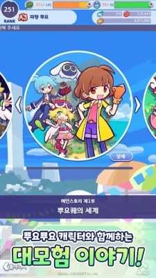 뿌요뿌요!! 퀘스트에서 사랑스러운 뿌요뿌요 캐릭터들과 함께 흥미진진한 퍼즐 RPG 모험을 시작하세요. 다채로운 캐릭터를 모아 육성하고, 전략적인 뿌요뿌요 퍼즐 전투로 세계를 구하는 여정을 경험하세요.