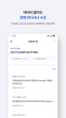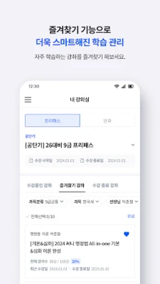 '내 강의실'에서는 구매하신 모든 단기 강좌를 한눈에 확인하고, 프리패스 강좌까지 손쉽게 찾아 담을 수 있습니다. 또한, 원하는 강의를 스트리밍 방식과 보관 방식 중 자유롭게 선택하여 학습할 수 있으며, 여러 강의를 동시에 보관하는 기능도 지원합니다. 네트워크 연결이 불안정한 환경에서도 보관된 강의는 '보관함'에서 언제든 재생할 수 있어, 시간과 장소의 제약 없이 꾸준히 학습에 몰입할 수 있습니다.