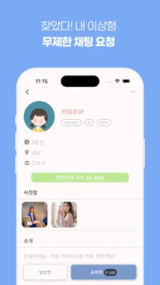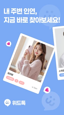 번거로운 소개팅 앱의 절차나 예측 불가능한 랜덤 채팅의 한계를 넘어, 위드톡은 두 가지 장점을 매끄럽게 결합합니다. 마음에 드는 상대에게 메시지와 함께 대화를 신청하고, 상대방이 수락하면 즉시 연결되어 지체 없이 소통할 수 있습니다. 위드톡은 동네 친구와의 편안한 교류부터 새로운 인연과의 설레는 만남까지, 모든 종류의 소셜 경험을 쉽고 즐겁게 만들어 드립니다. 지금, 위드톡과 함께 당신의 주변을 탐색하고 새로운 이야기를 시작해 보세요.